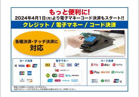 ・当店ではチャージはできません。予め高をお確かめのうえ、ご利用ください